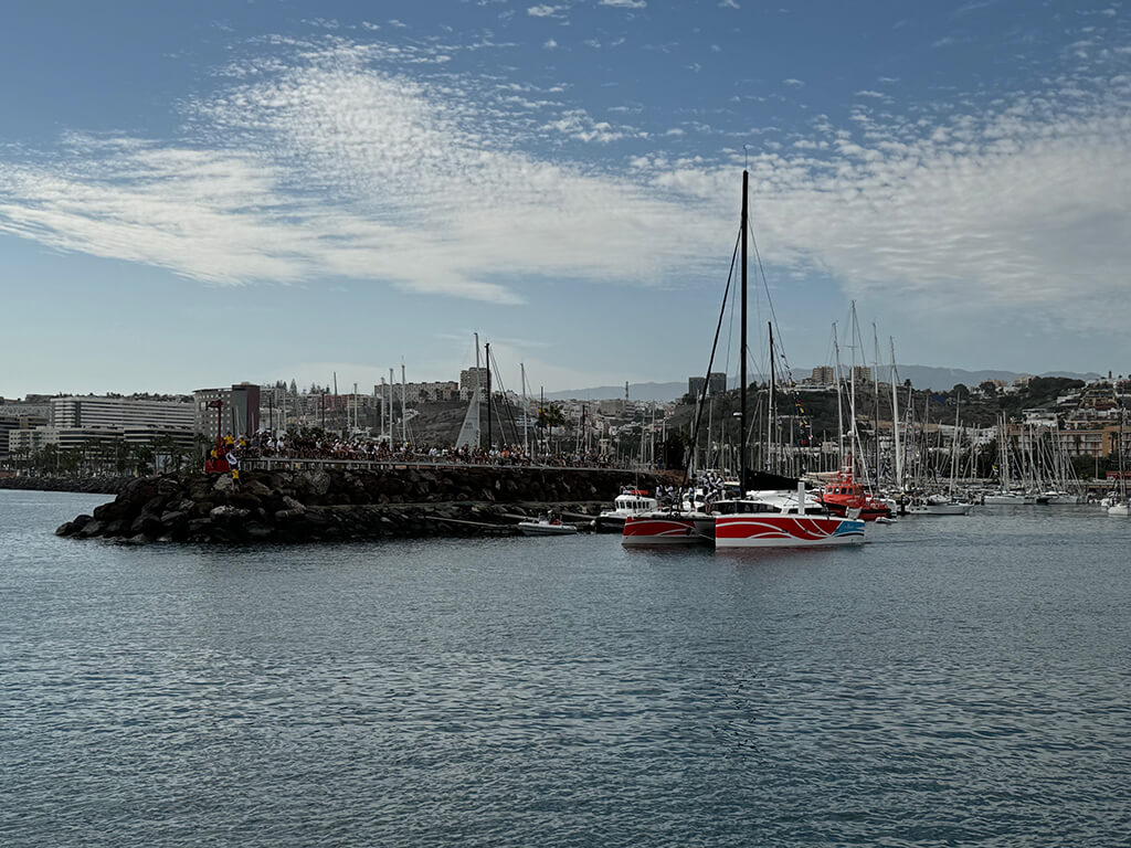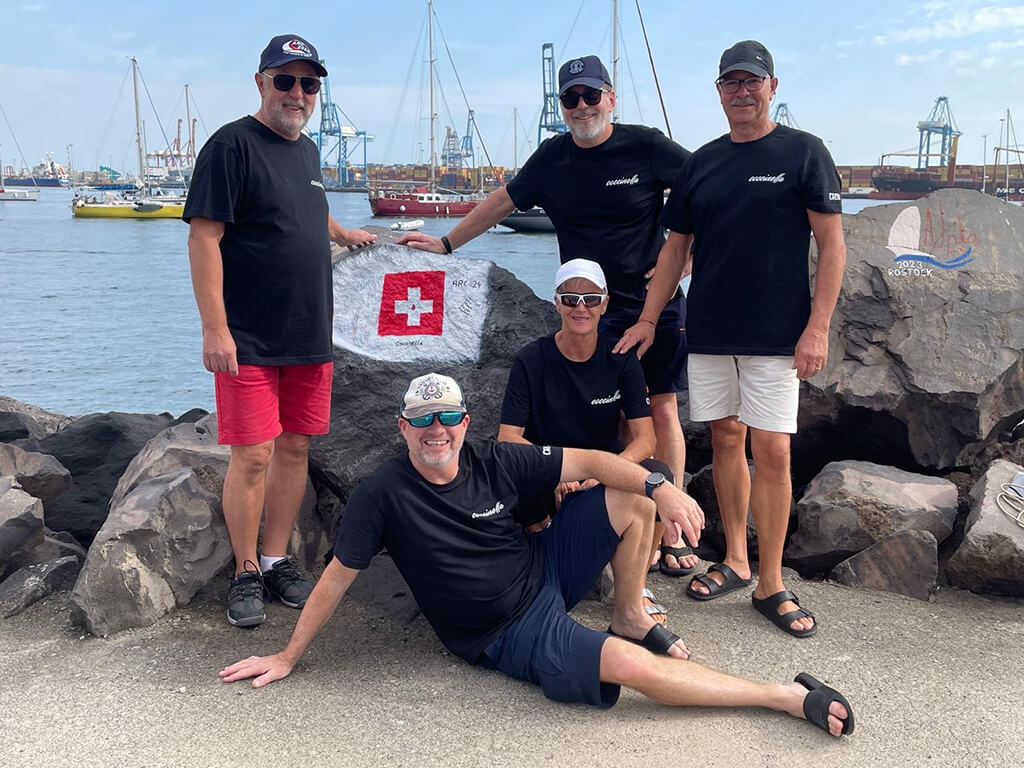 Gegen 11:30 Uhr lösten wir die Leinen und verliessen die Marina. An der Hafenausfahrt erwartete uns ein beeindruckendes Bild: Eine grosse Menschenmenge hatte sich auf der Hafenmole versammelt, winkte uns zu und rief ermutigende Worte. Besonders eindrucksvoll war ein Mitglied des ARC-Organisationsteams – ein Schweizer, der uns mit einem Alphorn und einem lauten „Hop, Schweiz!“ verabschiedete.