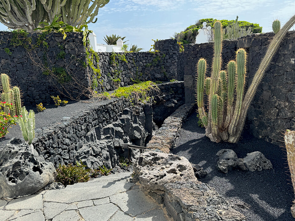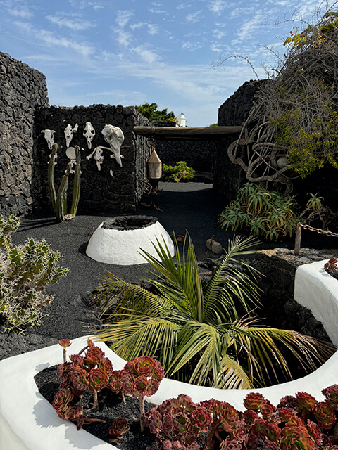 Die Architektur beeindruckt durch mehrere Ebenen, die sich um die Lavagesteinsformationen herum anordnen. Grosse Fenster bieten atemberaubende Ausblicke auf die umliegende Landschaft, während die Wände mit Manriques eigenen Gemälden und Skulpturen geschmückt sind. Besonders eindrucksvoll ist der Innenhof, ein tropischer Garten, in dem Pflanzen aus Lanzarote und anderen Regionen der Welt gedeihen. Einige Bäume wachsen durch mehrere Etagen des Hauses hindurch und ragen durch Öffnungen hinauf in den Himmel – ein weiteres Beispiel für Manriques geniale Verschmelzung von Natur und Baukunst.