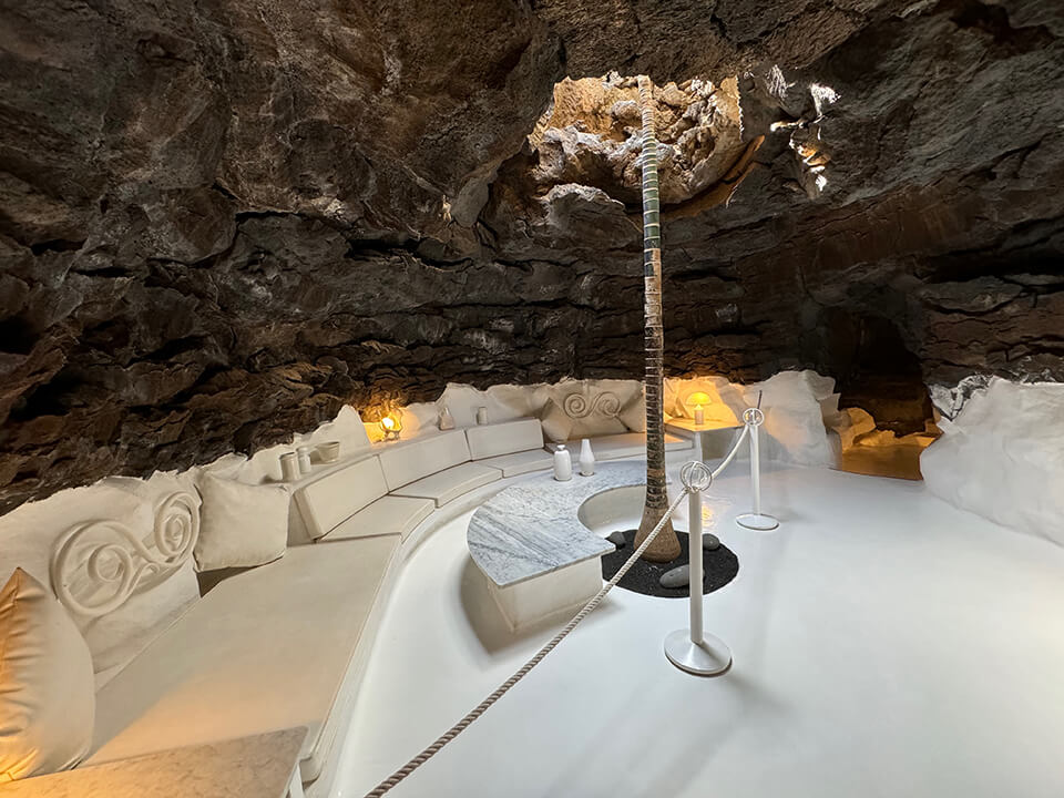 Das Besondere an diesem Haus ist nicht nur seine Lage, sondern vor allem, wie es in die ursprüngliche Landschaft integriert wurde. Manrique errichtete es inmitten einer ehemaligen Lavahöhle, wobei er die wilde Schönheit des Terrains respektvoll in die Architektur einfließen ließ. Die natürlichen Formen der Lava, die Geometrie der Felsen und das Wechselspiel von Licht und Schatten bilden eine Symbiose, die eine fliessende Verbindung zwischen Innen- und Außenwelt schafft. Das Ergebnis ist ein Wohnraum, der wie ein lebendes Kunstwerk wirkt – ein Ort, an dem die Grenzen zwischen Kunst und Natur verschwimmen.