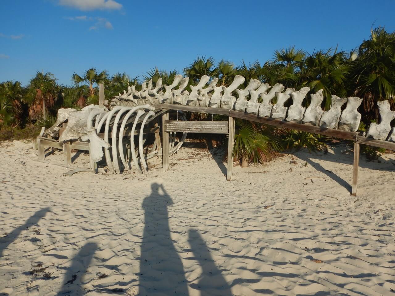 Vom Aquarium segeln wir noch am selben Tag weiter zur Warderick Wells Cay – dem Hauptquartier des «Exuma Cays Land and Sea Park», dem ersten marinen Schutzgebiet der Welt (seit 1958). Mit dem Dingi erkunden wir die Rangerstation und bestaunen das imposante Walskelett am Strand. Nach einer ruhigen Nacht an der Boje brechen wir früh auf Richtung Shroud Cay. Die Crew ist inzwischen top eingespielt – die Boje wird diesmal auf Anhieb erwischt.