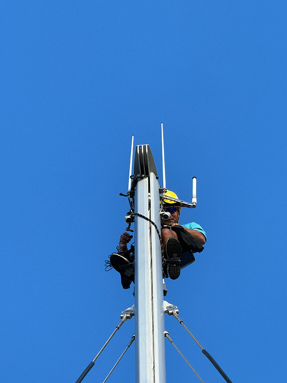 Eine der wichtigsten Neuerungen ist die Installation zusätzlicher Solarpanels auf einem speziell angefertigten Gestell, das an den Davits montiert wird. Diese Massnahme soll unsere Energieversorgung weiter verbessern. Für den Parasailor ziehen wir ein neues Kevlar-Fall ein, das besonders robust ist. Dieses Fall muss enormen Belastungen standhalten, da es ständig unter Last steht, hin- und herpendelt und dadurch anfällig für Scheuerstellen ist. Zusätzlich dient es als Sicherheitsmassnahme, sollte jemand am Mast arbeiten müssen.