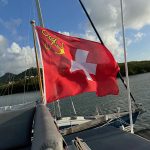 Ich habe eine neue Fahne mitgebracht – frisch aus der Schweiz, mit dem Logo des CCS (Cruising Club der Schweiz). Sie wurde gleich gehisst und zeigt nun noch deutlicher, wo das Schiff immatrikuliert ist.
