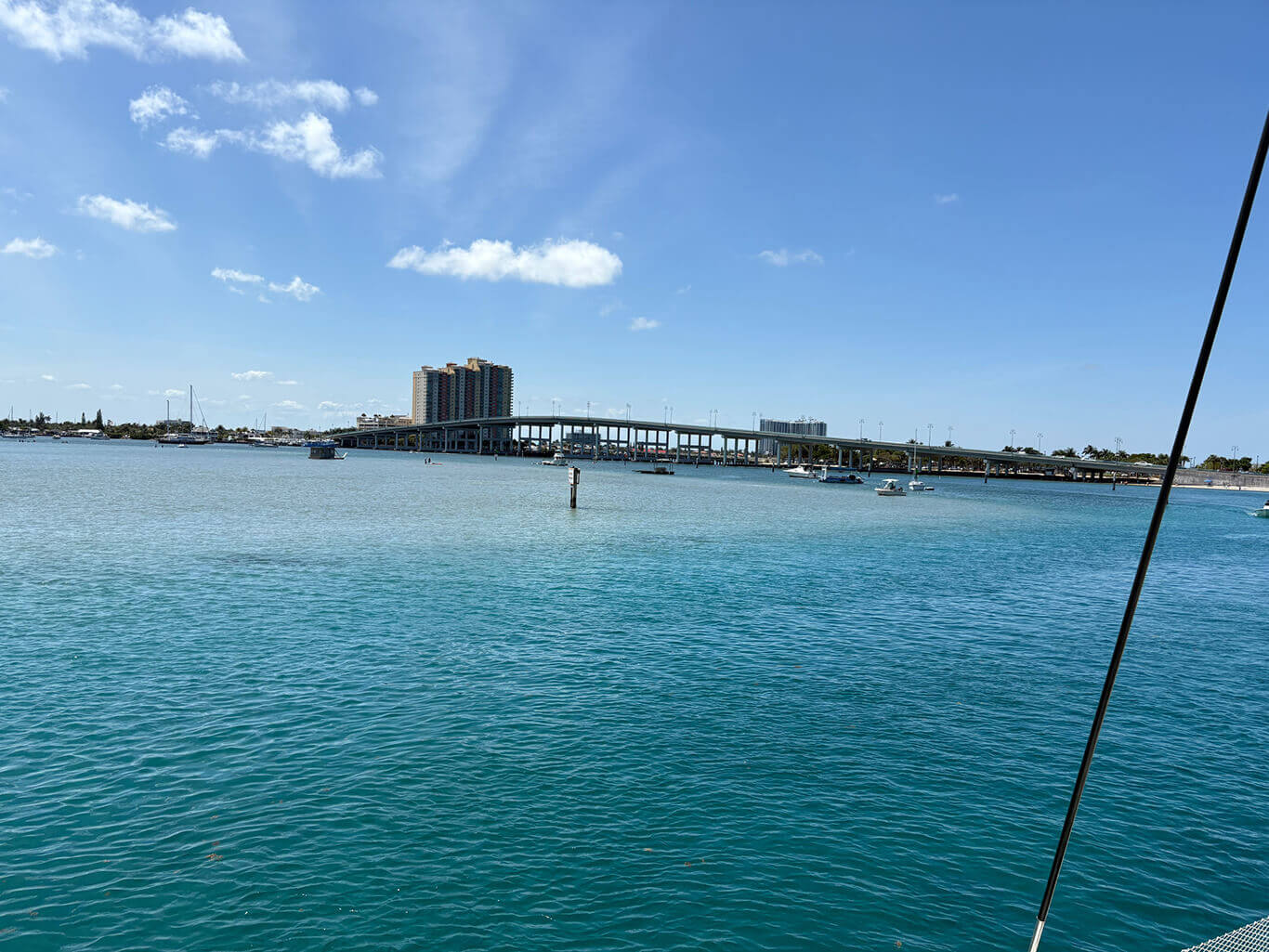 Im Laufe des Tages lernte ich den Bordingenieur des Schiffs vor mir kennen. Er stammt aus Kuba, lebt aber schon seit Langem in den USA. Früher war er sogar in Österreich tätig und fuhr dort auf der Donau. Heute arbeitet er fest auf diesem Schiff. Er wollte seine Freundin in Miami fragen, wie man das „Cruising Permit“ korrekt beantragt – also beschloss ich, vorerst abzuwarten.